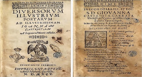 Shipione De Monti mblodhi sonetat e 181 poetëve italianë, dedikuar Xhiovana Granai Kastrioti Karafa dhe ia dorëzoi Sertorio Kuatromani, erudit dhe kritik letrar, të cilit i kërkoi t’i sistemoi për botim. Në vëllimin “Rime in lode...” me 215 faqe, janë prezantuar në italisht sonetat në Rime Toskane të 135 poetëve, poezi - dialog të Scipione De Monti me 53 poetë...