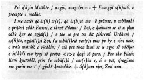 Shkrimet më të herëshme në gjuhën shqipe nuk i përkasin krijimtarisë letrare, por perkthimeve të Ungjillit të perdorura nga priftërinjtë në shërbimet litugjike. Shkrimet e para janë realizuar nga klerikët, me alfabetin latin në trojet veriore, ku ushtronin aktivitet kishat katolike dhe me alfabetin grek në jug të trojeve arbërore...