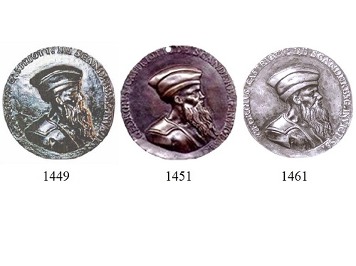 Koleksioni i medaljoneve të Piero Voltolina, me portretin e Gjergj Kastriotit, deshmojnë se janë prodhuar në vitet kur Gjergji ishte Zot i Albanisë dhe kryekomandant i ushtrisë arbërore.Medaljoni i dytë me portretin ...