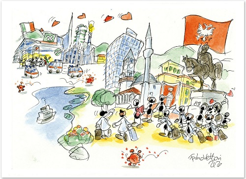 Është ky titulli i një punimi vizatimor, realizuar këto ditë nga artisti i shquar italian Fabio Vettore, të cilin ai e konkretizoi me shumë dashuri e mirënjohje në përgjigje të vatjes së mjekëve shqiptarë në Itali (mars 2020) për të luftuar pandeminë në rajonet veriore të Italisë më të prekura nga kovid19....