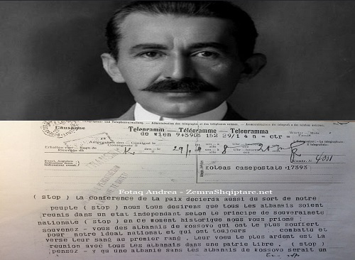I ndodhur në Romë në vitet 1919-1920, Hasan Prishtina, para se të vihej në krye të dërgatës së Komitetit "Mbrojtja Kombëtare e Kosovës" në Konferencën e Paqes në Paris, i dërgon në Lozanë të Zvicrës, patriotit Sotir Kolea dy telegrame në gjuhën frënge që i japim të përkthyera për herë të parë për publikun e gjerë...