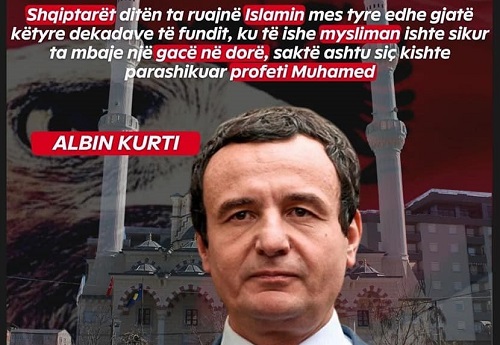 A foli KM Kurti në ceremoninë festive të shënimit të 70-vjetorit të themelimit të Medresesë Alaudin në Prishtinë si mysafir zyrtar, si mysliman apo si mysliman simulant, për t’ua shpaguar mbi 100 mijë vota që mori nga islamistët në zgjedhjet parlamentare (kryesisht nga islamistët në...