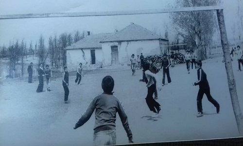 Fotografi e vitit 1972. Nxënës të Shkollës Fillore “Azem Bejta” të Prekazit duke luajtur futboll në orën e Edukatës Fizike. Në prapavijë duket objekti i shkollës së vjetër të Prekazit, e ndërtuar nga pushteti serb në vitin 1927. Gurët për ndërtimin e saj ishin marrë nga kulla e Azem Bejtës, e shndërruar në gërmadhë pas...