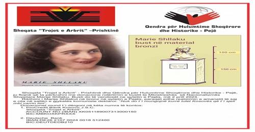 Rikthimi i Marie Shllakut në Bronz në qytetin e Pejës paraqët edhe realizimin e amanetit të saj e cila në sallën e gjykatës komuniste deklaroj: “ Nuk do t´i mungojnë kurrë lulet Kosovës që t´i sjell mbi varrin tim“. Shoqata “ Trojet e Arbrit “ - Prishtinë dhe Qëndra për Hulumtime Shoqërore dhe Historike-Pejë...