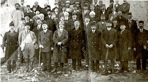 Kongresistët bënë edhe këtë foto. Në radhën e parë, nga e majta në të djathtë, dallohen ministrat: Lef Nosi, Mufit Libohova, Sami Vrioni, Mehmet Konica, Fejzi Alizoti, Mehdi Frashëri, Luigj Gurakuqi, Petro Poga, Mustafa Kruja...