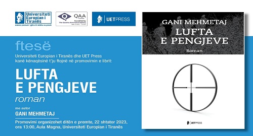 Shtëpia botuese tiranase “UETpress” ka botuar këto ditë romanin e ri “Lufta e pengjeve” të shkrimtarit dhe publicistit të mirënjohur shqiptar, Gani Mehmetaj.Romani do të promovohet të premten, 22 shtator 2023 në orën 13:00, në ambientet e Universitetit Evropian të Tiranës, në sallën “Aula Magna”.Gani Mehmetaj ishte fitues i çmimit letrar “Kadare”...