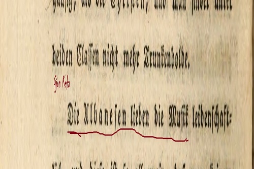 Një udhëpërshkues i cili gjatë qëndrimit në Iliri(Arbëri) dhe vendet tjera përreth në vitin 1820 shkruan kështu për shqiptarët:„Shqiptarët janë të apasionuar pas muzikës dhe kjo është në përgjithshësi. sa është e pamundur të shohësh trupat e ushtarëve që nuk kanë një mandolinë dhe këngëtar...