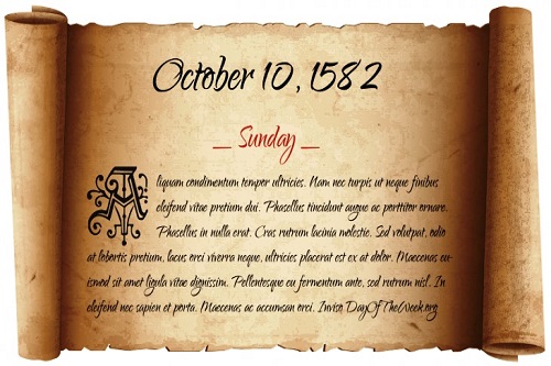 439 vjetori i praktikimit të kalendarit Gregorian! Një person i lindur më 10 tetor 1582 sot do të jetë 439 vjeç!Çdo ditë, ka shumë gjëra që ndodhin në botë (lindja, vdekja, lufta, fatkeqësia, etj.). Më 10 tetor 1582, asgjë nuk ndodhi, asgjë nuk ndodhi për 11 ditë midis 4 dhe 15 tetorit 1582...