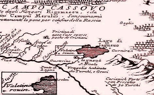 Në një cep të historisë së Kosovës antike sipas Atlasit të VM Coronelli-t i botuar në Venedik në vitin 1689. Në plan të parë këtu është Fushë Kosova (CAMPO CASSOVO), me theks të veçantë me fortifikatën e rrënuar të Veletinit, "Valetino ruin", e cila ndodhet në perëndim të Janjevës. Aty pranë shohim edhe kishën...