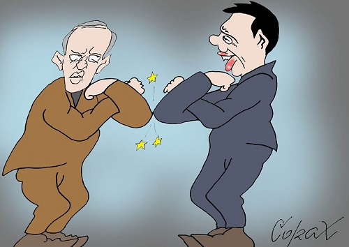 Që kur erdh’ virusi:Koronë dhe Kovid,Nuk la pa na prekurEdhe në traditë..! Tashmë përshëndetjaKa marrë tjetër stil,E nisëm me boksTani dhe me bryl! S’ka më ledhatimeE puthje të prushtë,Mbetëm të mbyllurSi kërcylli n’grusht!...
