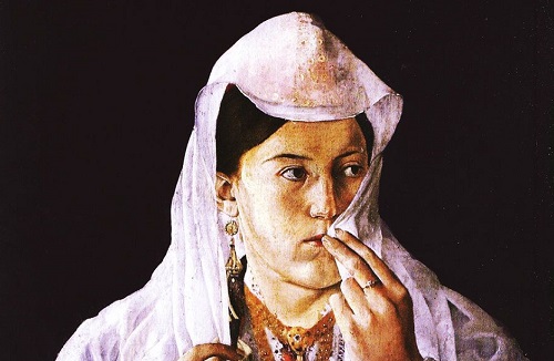 Pikture qe flet vetefytyra jote engjellore,,mban shpirtërat gjallë,fisnike e cilter,shenjtorengre të vdekurit nga vari,sytë që shndrisin në ballë,margaritarë ,pasuri e rallë,flokët onde derdhur mbi supe...