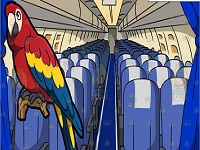 Në një aeroplan plot me udhëtarë,Kërcet belaja me sherr të paparë! Çmendet papagalli lyp pije alkoolike,Të cilat ndalohen me rregulla strikte! - Më sill një birrë ta bëfsha mamin!Shan papagalli desh e bënë namin...