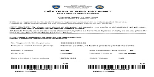 Jam ndër të parët që jam regjistruar si votues jashtë vendit.Kërkesën për regjistrim e kam bërë më 12 Gusht 2025.Njoftimin për regjistrim dhe Dëftesën e Regjistrimit i kam pranuar nga KQZ-ja më 13 Gusht 2025.E prita për një muaj rresht dhe për çdo ditë ardhjen e Zarfit tim, prita edhe deri në mesditën e sotme..., prisja sepse...