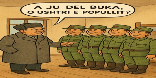 Shkoi Shoku Enver një ditë drejtkazermave ushtarake me radhë,me pallto të gjatë e sy të mprehtë,të gjithë ushtarët në rresht si gardh. I largoi oficerët, mbeti me ushtarë,pyeti tre herë njësoj pa ndërprerë:- A ju del buka, o ushtri e popullit?- Na del e na tepron, shoku Enver!...