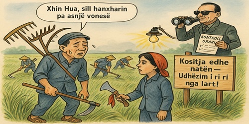 Në kohën e lavdishme të Shokut Enver,Kodrat e malet bëheshin ara me vlerë.Bujqësia ecte mirë me këmbë të mbarë,Kooperativa për gra edhe burra fshatarë. Kur mori vesh Kina e Maos, lidhi miqësi,Me të madhërishmen tonë, nënën Shqipëri.Vërshuan kinezët me vullnet të paparë,U sistemuan në banesa kolektive me orar...