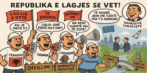 O lokalizëm, mallkim i kombit,që po na ndan në copa pafund!Në flamur ngjisim lagjen tonë,e bashkimin s’e gjejmë askund! Kur bota kërkon të bashkohet,për një të ardhme me integrim,ne ngremë gardhe nga inatet,në vend të urave për zhvillim...