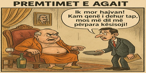 Në çiflik të vogël, në majë të një shpati,Jetonte Agai me luks dhe stil burokrati,Rreth e rrotull lakuriq, pa fije të moralit,Me verë edhe raki, në kulm të skandalit. Shërbëtori i shkretë, me rrobat e leckosur,Mbante tabakanë me fytyrë të katranosur.Papritur Agai, në krahët e verës e rakisë,E thirri me britma, punëtorin e çifligarisë...