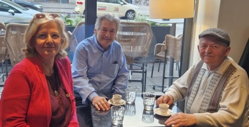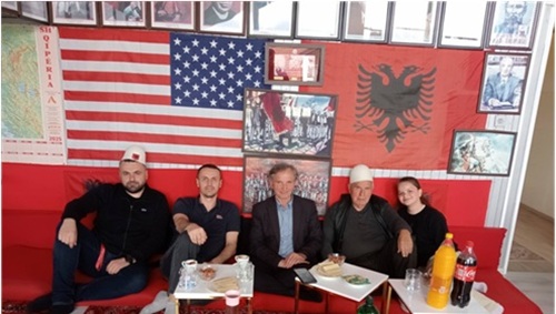 Në pamje është si cdo foto tjetër, ku tre persona janë ulur të pinë kafe së bashku. Por, në thelb të tre personat i bashkon në këtë tavolinë dhe në bisedë një tregues shumë i rëndësishëm, që është faktori vendimtar i unitetit të kombit, gjuha e bukur shqipe. Sadbere Emshiu me origjinë është shqiptare nga Maqedonia e Veriut; Xhelil Musa...