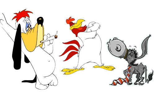 Dikur Shoku Tito, s’qe në terezi,Kërkon nga Amerika mall veresi.Mirëpo, amerikanët i thanë troç:-Nuk ka ndihmë, jeni me borxh! Lutje, premtime dhe fjalë shumë,Më në fund kërkesa hyri në punë:- Një gjel, një qen dhe një gomar,Sikur "kapital" për të ecur mbarë...