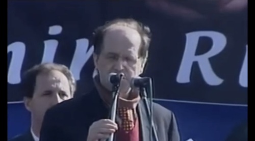 Të nderuar qytetarë, të dashur votues, miq dhe... ata që ende po mendojnë!Sot kam dalë këtu, përpara jush,tu dëgjoj dhe të më dëgjoni. Jemi përpara votimeve. Po ju porosit me bindje, miqësi dhe siguri të plotë. Bëjeni mendjen rroçkë, ne do i fitojmë zgjedhjet si gjithnjë. Atë datën 11 Maj ne nuk e kemi...