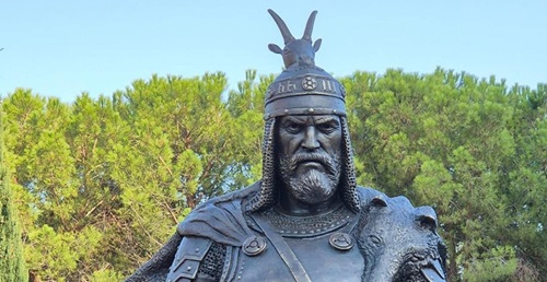 Në bronzin e pavdekshëm, ku çdo linjë dhe formë është gdhendur me dorën e skulptorit Gëzim Muriqit, qëndron një hero, i ngjitur në përjetësi. Skënderbeu, ky kalorës i stolisur me kurajë dhe lavdi, mbart në trupin e tij të hekurt, gjithë peshën e një historie të madhe, të shkruar me gjak dhe besë...