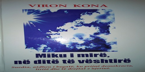 Po shfletoj librin më të fundit “Miku i mirë në ditë të vështirë”, të shkrimtarit dhe studiuesit të njohur Viron Kona, i cili që në fjalët e para shprehet: “Sa herë dëgjoj të flitet për Suedinë dhe njerëzit e saj të urtë, të mençur e punëtorë, ndjej të më vërshojë brenda vetes nderim dhe mirënjohje e thellë...
