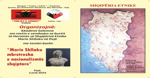 Shoqata “Trojet e Arbrit” - Prishtinë dhe Qendra për Hulumtime Shoqërore dhe Historike -Pejë, organizojnë: Akademinë solemne me rastin e vendosjes se bustit të Heroinës së Shqipërisë Etnike Marie Shllaku në Pejë me temën bosht: “Marie Shllaku mbretresha e nacionalizmës...