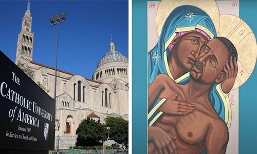 Një pikturë me ngjyra pieta e ekspozuar në shkollën juridike të Universitetit Katolik të Amerikës, që disa e shohin se përshkruan afrikano amerikanin drogaxhi George Floyd në vendin e Jezusit u vodh, sikurse njoftoi shkolla.Por në një email, më 24 nëntor 2021, Presidenti John Garvey tha se vepra artistike, e cila shkaktoi një reagim...
