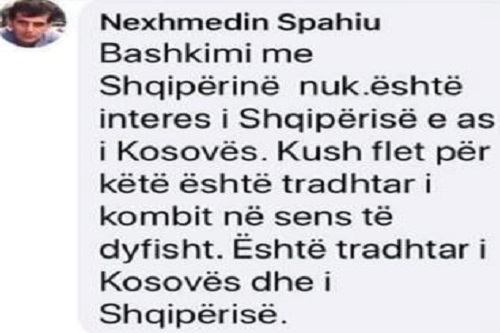 “Aleati strategjikë i shkatërrimit tonë. Dashuria e madhe e otomanonostallgjikut turk dhe të gjithë shqipfolësve që janë konvertuar në turqë e arabë. Nexhemedin Spahiu e bënë rolin e argatit e të spiunit turk sikur nuk e njehë realitetin shqiptar drejtë Bashkimit Kombëtar...