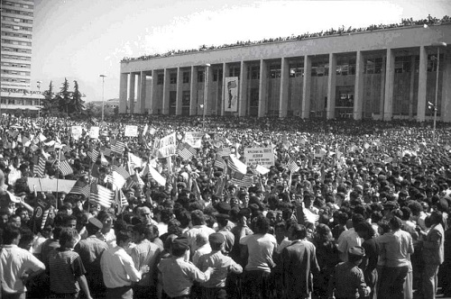 Më 22.6.1991, sekretari i shtetit Xhejms Bejker (James Baker) zhvilloi një vizitë historike në Tiranë. Në sheshin “Skënderbej”, atij iu bë një pritje madhështore. Këtu mbajti një fjalim tejet interesant. Mesazhi kryesor që ai dha ishte se SHBA po kthehej te shqiptarët dhe se rruga e demokracisë do ishte e pandalshme...