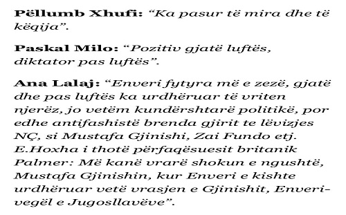 Mjafton të lexosh vetëm këtë debat për të kuptuar sa rëndë janë dy shokët e trashëgimisë komuniste. Përgjigja e znj.Lalaj ishte e duhura.Sipas dyshes, Enveri, ushtari dhe vegla e jugosllavëve Popoviç, Mugosha, Stojniç ishte “i mirë” gjatë luftës, por u prish dhe u bë “i keq” pas saj. Enveri as më pak e as më...