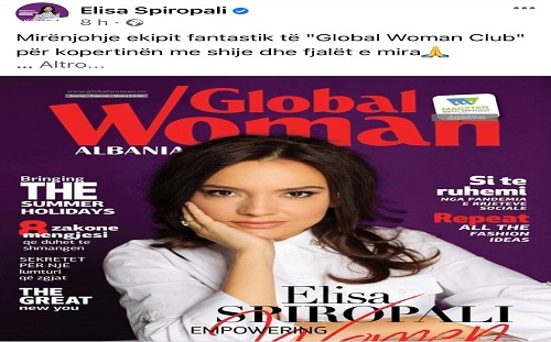 Është një lajm sensacional që na e ka përcjellë sot përmes rrjeteve sociale, znj. Elisa Spiropali. Një revistë në Angli, që në kopertinë, e hap numrin e ri të këtij botimi me portretin e saj, si një grua e suksesshme në politikë dhe në ambiciet e saj. Kjo revistë, që është një nga mijëra botimet e zakonshme që dalin si kudo në botë...