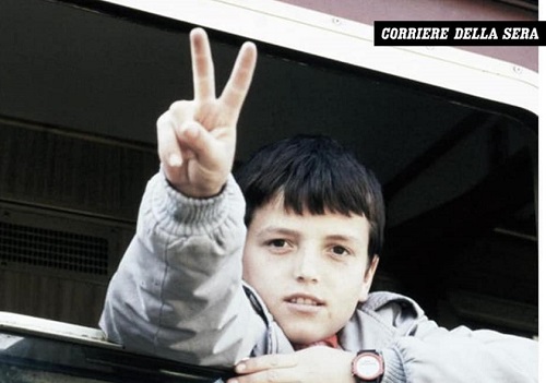 30 vjet më parë, vetëm 13 vjeç, bashkë me prindërit, ishim ndër të parët që mbërritëm me anije në Itali.Në këtë foto jam duke udhëtuar në tren me shqiptarë të tjerë për t’u shpërndarë në veri të Italisë.Italia m’u bë Atdheu i dytë. Aty u rrita, u maturova, u shkollova e mësova shumë...