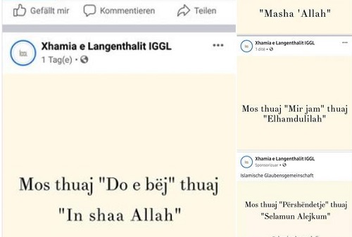 Ju albanofobët racistë të xhamive islame me klientë "shqiptarë", që luftoni shqipen më shumë se serbet, këndej në diasporë: po ua them një gjë: Ja ju këtu ja ne që flasim shqip - të dyja palët jo. Për racizëm do tu mbyllim. A pak u duken ksenofobët tjerë por edhe ju muta keni mbetur ta luftoni gjuhën shqipe mu në mes të Zvicrës...