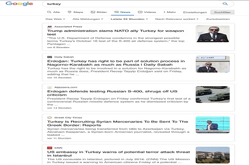 Lajmet kryesore mbi Turqinë në 24 orët e fundit në gjuhët: anglishte, frengjishte, gjermanishte, spanjolle, hollandeze, italishte, polake, ruse dhe gjitha tjerat:1. Turqia teston raketat ruse BE, NATO dhe tjerët paralajmërojnë masa të rrepta.2. Mbyllen ambasadat amerikane në Turqi për shkak të ...