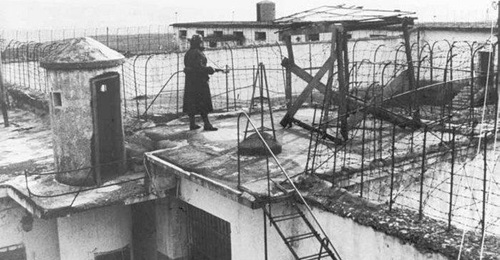 Një tabelë false paralajmëronte hyrjen në kamp! Mu duk si Kishë martirësh! Nisa të bëja Kryq, shenjën tonë të faljes; atë të njehsimit me hyjnoren, por dora më mbeti para syve! U hutova! Në sheshin poshtë, atje te kampi i vdekjes për liri dhe i lirisë që solli vdekja, kishin ardhur njerëz të pushtetit!...