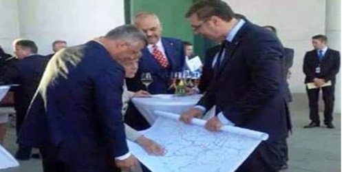 Kjo fotografi flet sa mijëra fjalë. Secili më bandit se tjetri, janë dakorduar për ta copëtuar Atdheun tonë Kosovë. Kryebanditi Vuçiq është në rolin e tij natyral: Të zhvatë sa më shumë nga territori jonë. "Qeni i keq ta sjell ujkun në torishtë", - thotë populli. Kjo i ndodhi Kosovës tonë halle-madhe. Hashim Thaçi...