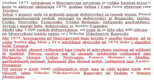 Rusia e kishte fituar përkrahjen nga të krishterët që jetonin në P. Osmane, kurse në anën tjetër e kishte bërë për veti edhe opinionin politik të Evropës, kështu që në muajin prill të vitit 1877 i shpalli luftë P. Osmane.Serbia e nxitur nga Rusia e filloi luftën me 2 dhjetor 1877...