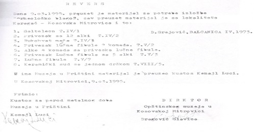 Qazim Namani: Bartja e materialit arkeologjikë në vitin 1995 nga Muzeu Arkeologjik i Prizrenit në Muzeun e Prishtinës