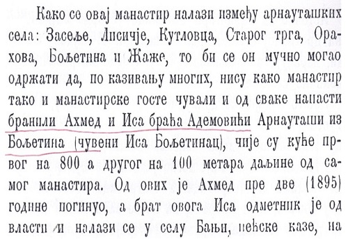Kur bëjmë fjalë për kishën e familjes së Boletinëve në fshatin Boletin, na ofrohen burime të ndryshme shkencore. Të dhënat e trashëguara te popullata autoktone shqiptare flasin për një kishë të vogël, që njihet si kishë shqiptare, por që sipas literaturës së vonshme serbe, atë kishë kinse e paska ndërtuar një serb...