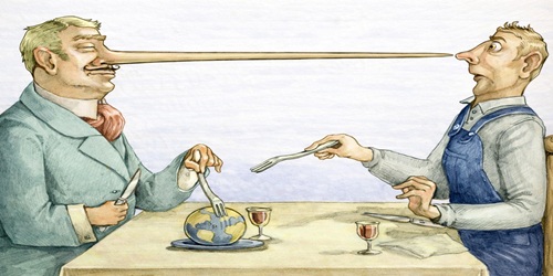Gënjeshtra në shoqëri, vjen shtrëngatë,Me këmbë të shkurtra dhe bisht të gjatë.Ajo vjen paturpësisht pa u skuqur fare,Të shikon ndër sy dhe të rren ashiqare. Dikush gënjen për qielli, dikush për tokë,E këta rrenacakë s’e vënë gishtin në kokë.Nuk e mendojnë aspak se ajo nuk ka nder,Dhe një ditë e drejta ua zë bishtin me derë...