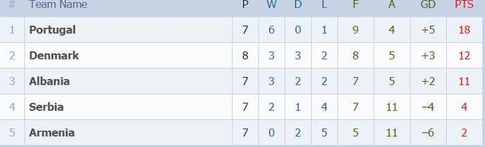 Shqiperia mundet ne shtepi nga Serbia sipas menyres tradicionale duke pesuar edhe kete here ne fund te takimit. Por ky nuk eshte fundi sepse Portugalia fitoi kunder Danimarkes duke na e dhene mundesine qe te shkojme ne Europian me nje fitore ne Armeni.