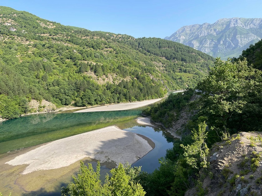 Ajri i freskët tregonte se na priste një ditë e mirë. Vapa e madhe e pak ditëve më parë ishte fashitur dhe Vjeshta po nxitonte të zinte vendin e saj. Pas një kthese shihej rruga për ku ishim nisur; shikoj gjarpërushen e saj të asfaltuar nën Shkëmbin e Rajës, mbi liqenin e Komanit. Më tej, e pashtruar, rruga dredhon buzë lumit të Nikaj Mërturit.