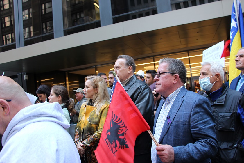 Protestë për drejtësi kundër krimeve serbe nga Diaspora në Amerikë para konsullatës serbe