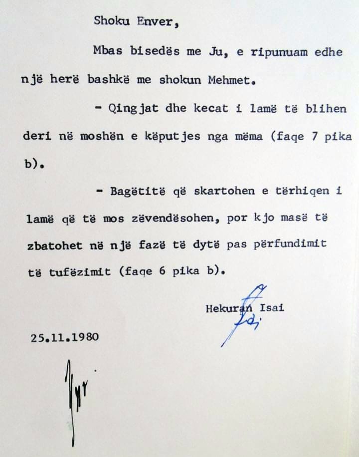 oborrin dhe bagëtinë, Enver Hoxha, pasi lexoi propozimet, më 14.4.1980 vendosi