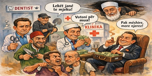 Ankohet dentisti: - S’kam punë!,Ia kthen Xharrahu: - Ta them unë:Pacienti ka tridhjetë e dy dhëmbë,kurse unë, vetëm një ndër këmbë! Me synet një herë në gjithë jetën,si ta mbush i shkreti unë kuletën?Kërcen varrmihësi: - Jam me ty,njëherë vdes njeriu, s’e sheh me sy!...