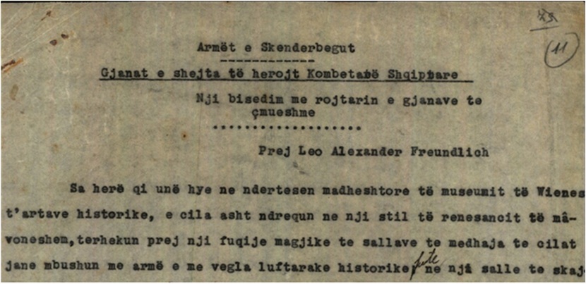 dhjetor 1897 tek revista Albania, në shkrimin « Armët e Skënderbeut