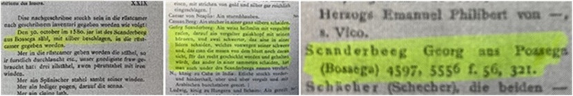 me shpatat e Skënderbeut në Vjenë. Ajo « Kokë e prerë e këtij Skënderbeu të