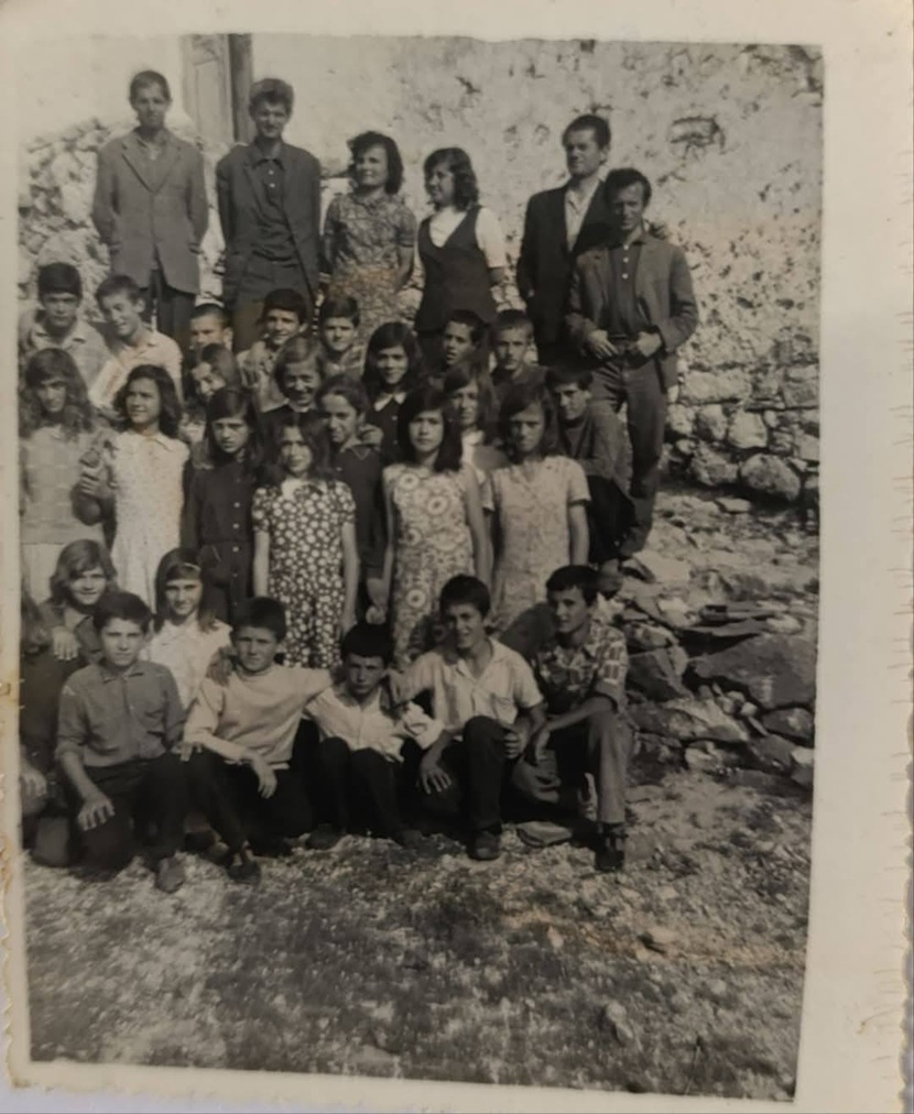 të shkollës Halim Xhelo, Tërbaç dhe nxënës të klasës VIII, 1974