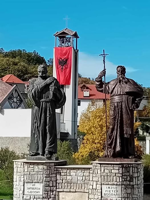 Pjetër Bogdani e Shtjefën Gjeçovi pranë njëri-tjetrit. I pari, doktor në teologji dhe filozofi në Padova [Itali], para 350 vitesh. I dyti, doktor honoris causa në Universitetin e Lajpcigut në Gjermani. Shqiptari i parë me këtë titull nga një akademi e huaj dhe prestigjioze. Të dy, martirë të një misioni që ende s’ka përfunduar: rikthimin e shqiptarëve në vendin që u takon, në qytetërimin europian. Të dy bij të Kosovës. Dhe të Shqypnisë, po ashtu.